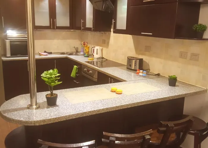 El apartamento está situado en el distrito Al Mamsha El Seyahi, a 15 minutos en coche del aeropuerto Internacional de Hurghada. El Marine Sports Club se encuentra a unos 10 minutos en coche del apartamento, كمبواند قمريه y en las cercanías hay diferentes atracciones. Además, el Parque Acuático Jungle está situado a 7 km de la propiedad.